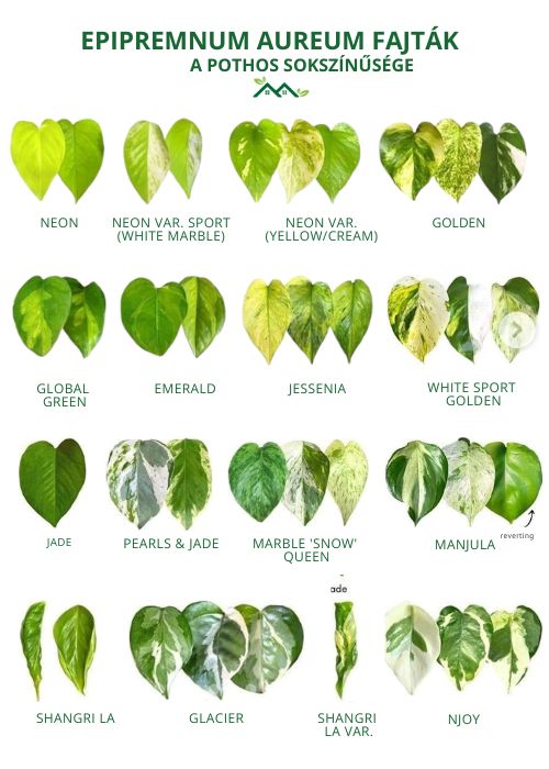 Az 1989-es NASA Clean Air Study szerint a Pothos hatékonyan szűri ki a levegőből a formaldehidet és a benzolt, így hozzájárul az egészségesebb otthoni környezethez. Számos változata kapható a piacon, az ‘Aureum’ aranysárga foltozottságától a ‘Marble Queen’ fehér csíkozásáig, vagy akár a teljesen halványzöld ‘Neon’ fajtáig.