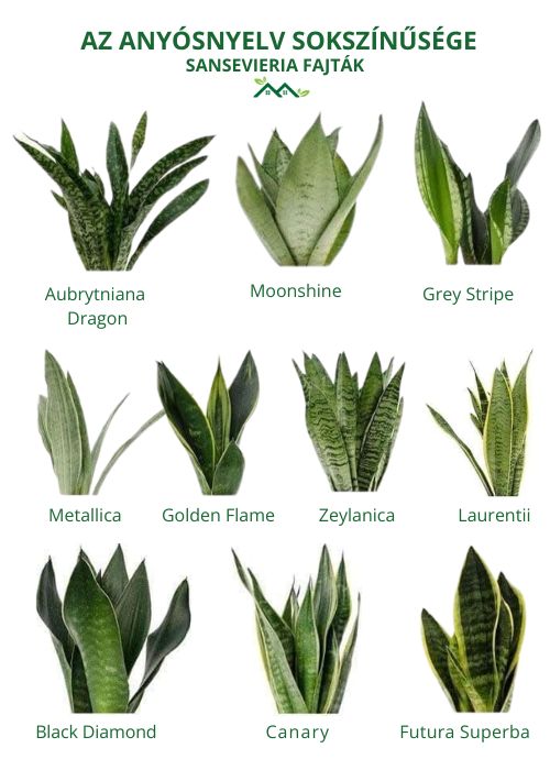 Számos változata létezik, a klasszikus zöld-sárga csíkos ‘Laurentii’ fajtától kezdve a teljesen sötétzöld, vagy akár a hengeres levelű változatokig. Magassága 60-90 centiméter körül alakul, így nagyobb helyiségekben imposáns látványt nyújt.